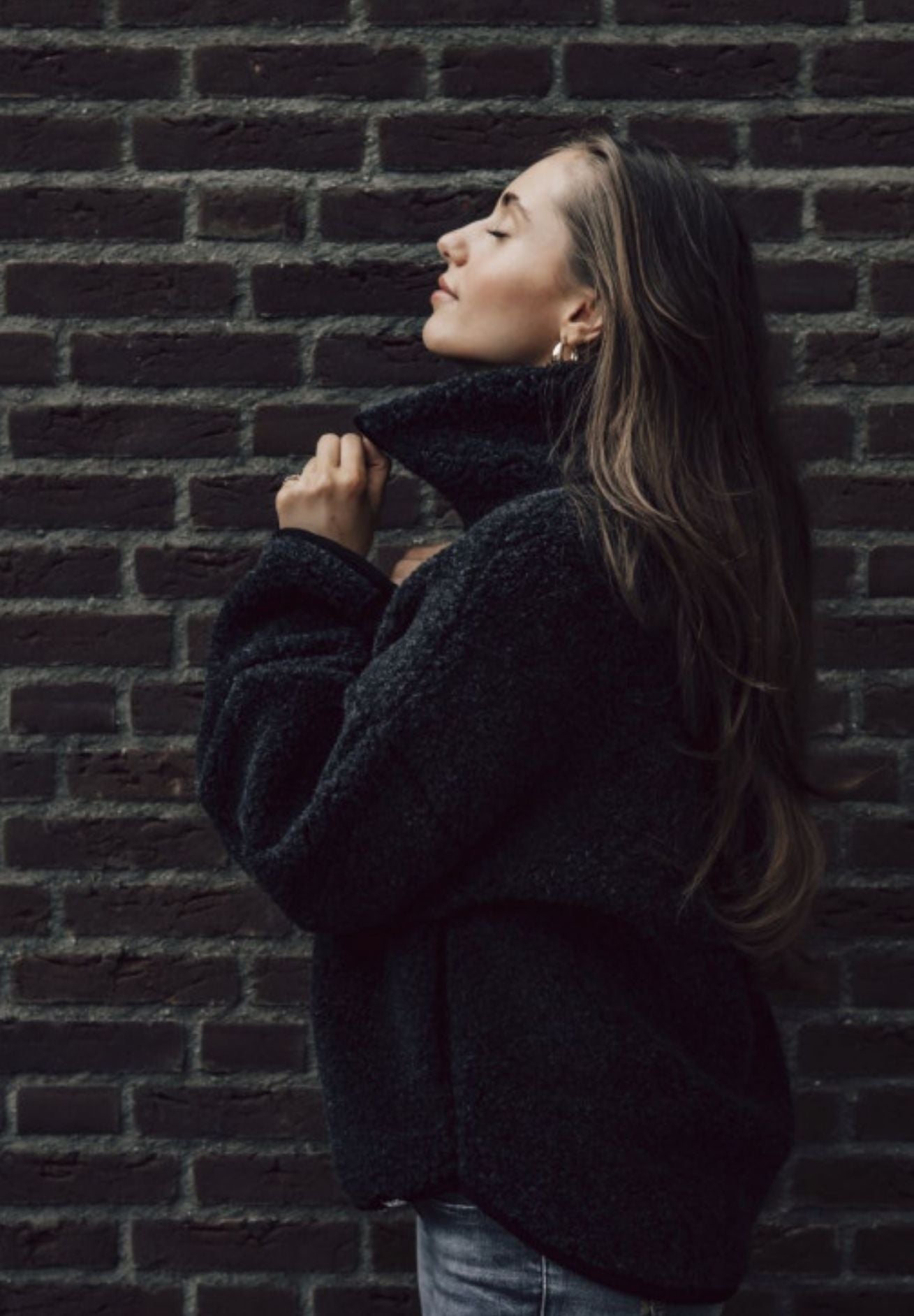 Alwero Premium Qualität: Dieser BEL Sweater in Deep Black und Pistacchio vereint innovative Ultra Light Wolle-Technologie mit durchdachtem Oversize-Design und ist super stylo.