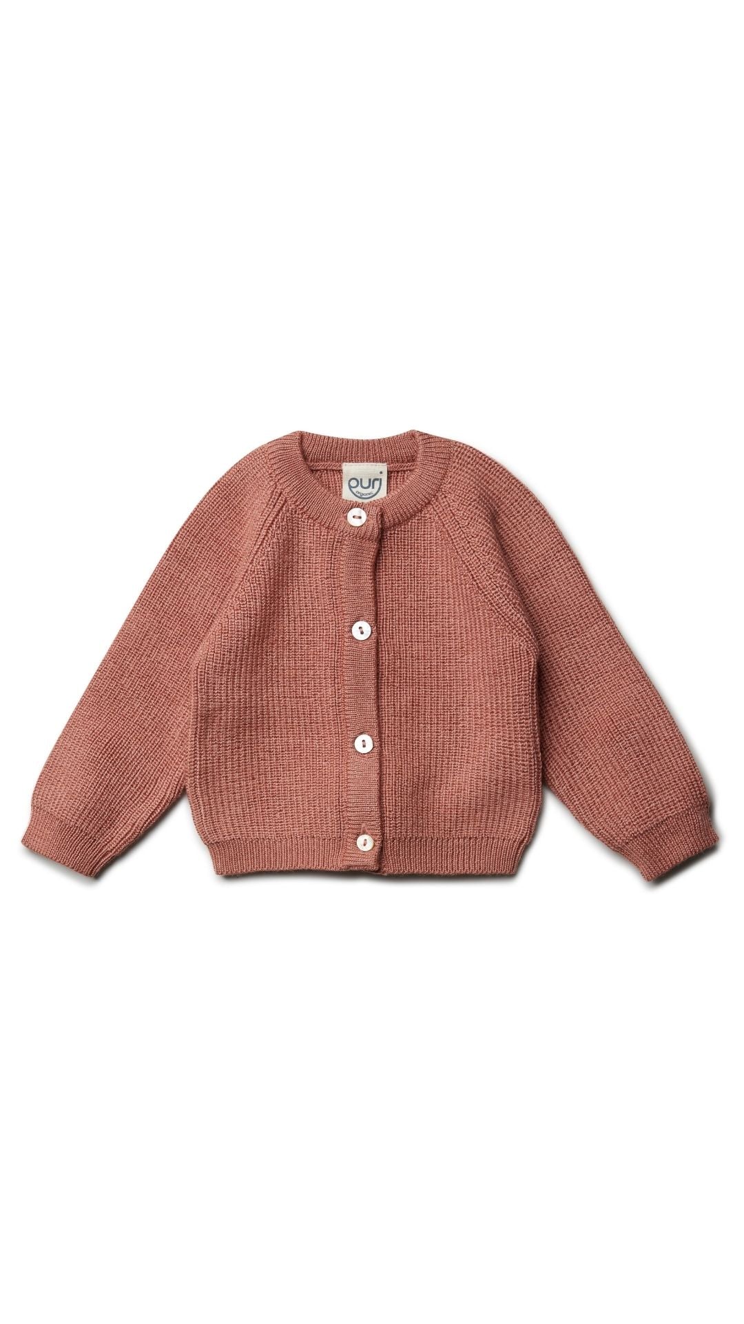 Puri Organic mitwachsender Strickcardigan aus Merino Seide in clay