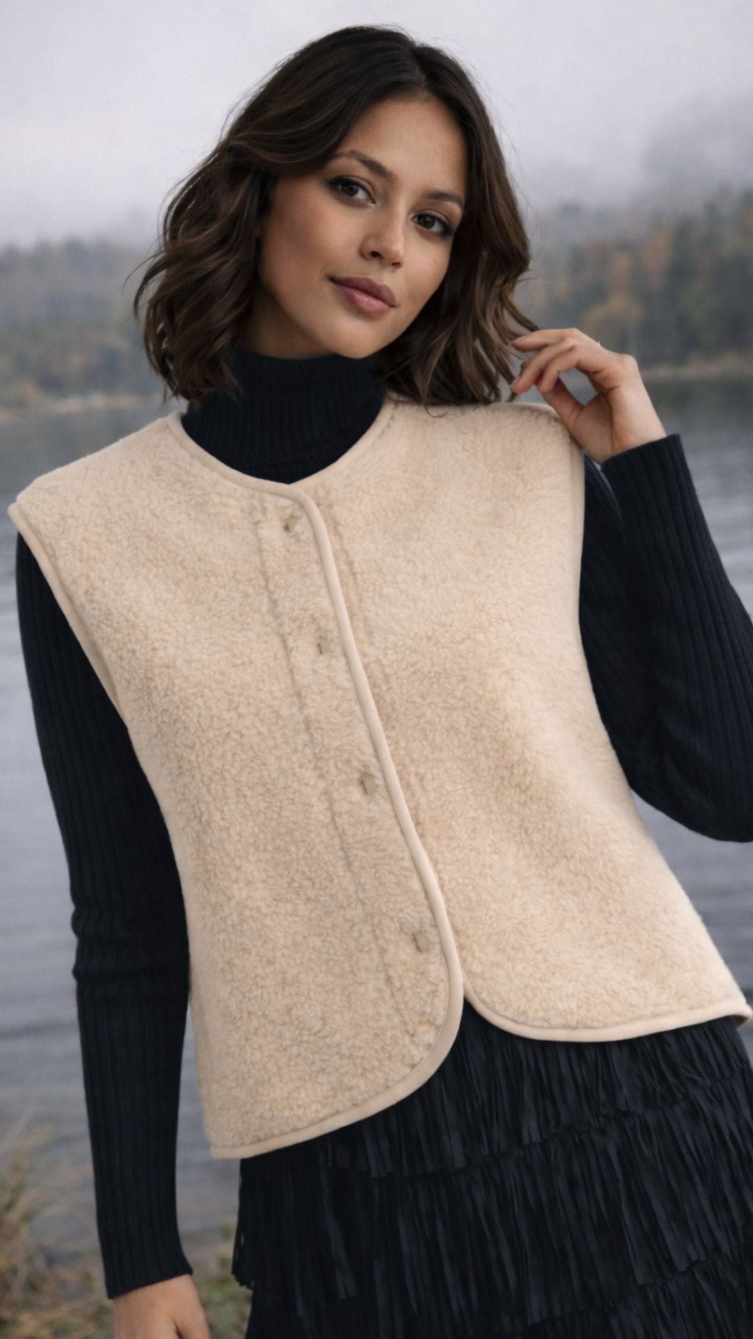 "Ich liebe hochwertige alltagstaugliche Allroundtalente - diese weiche Wollweste von Alwero ist so ein Lieblingsstück. Sie ist das ganze Jahr über einsetzbar und kann super unter der Regenjacke im Herbst & Winter verwendet werden. "