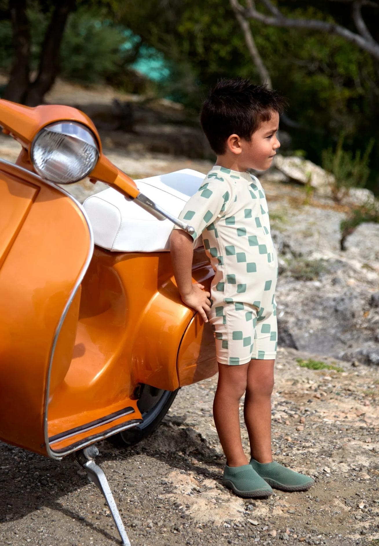 Lässig UV Schwimmanzug kurzarm in Karo sea salt gruen