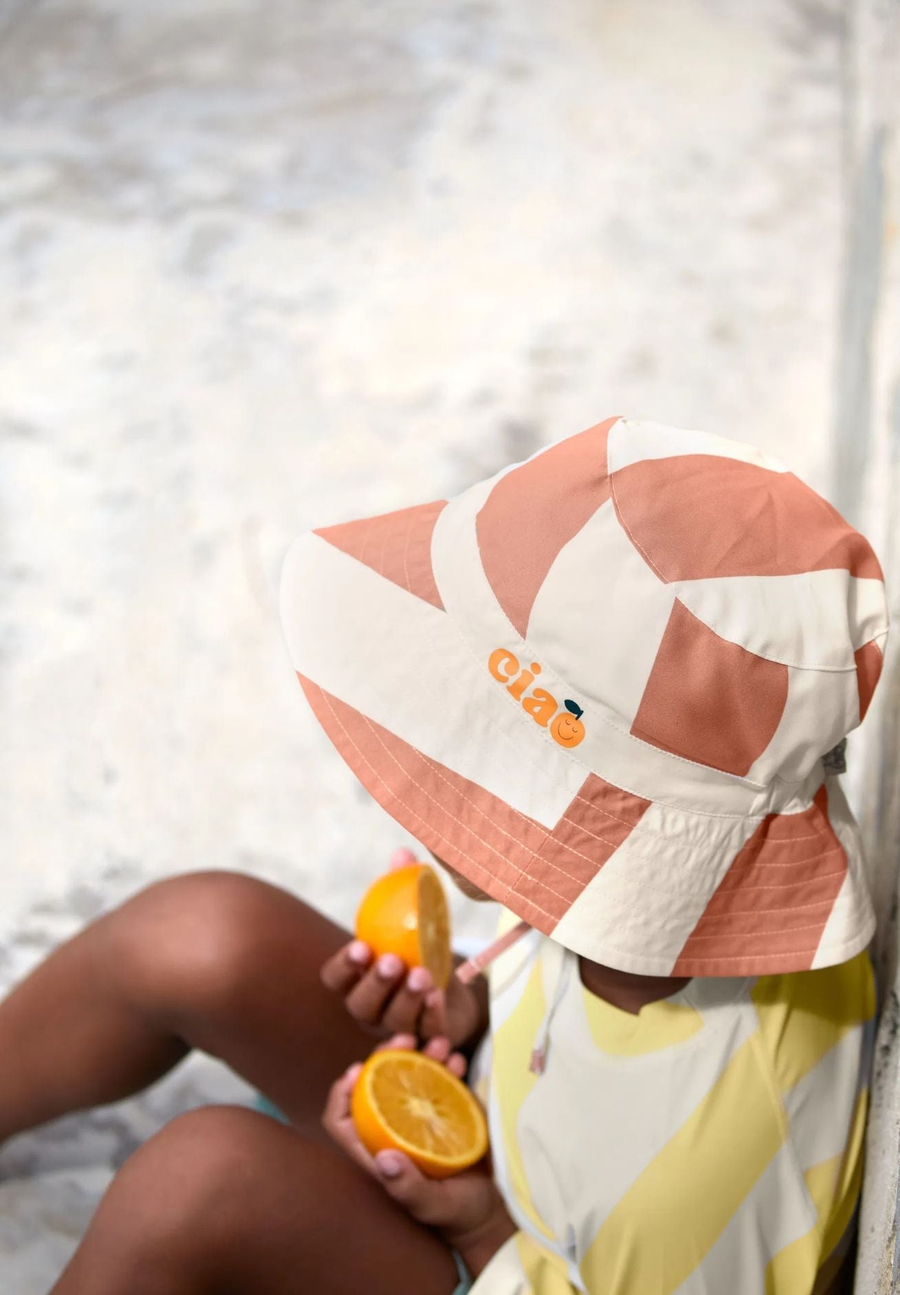 Lässig UV Sonnenhut UPF80 Fischerhut schnelltrocknend wendbar "stripes" Ciao terracotta ecru