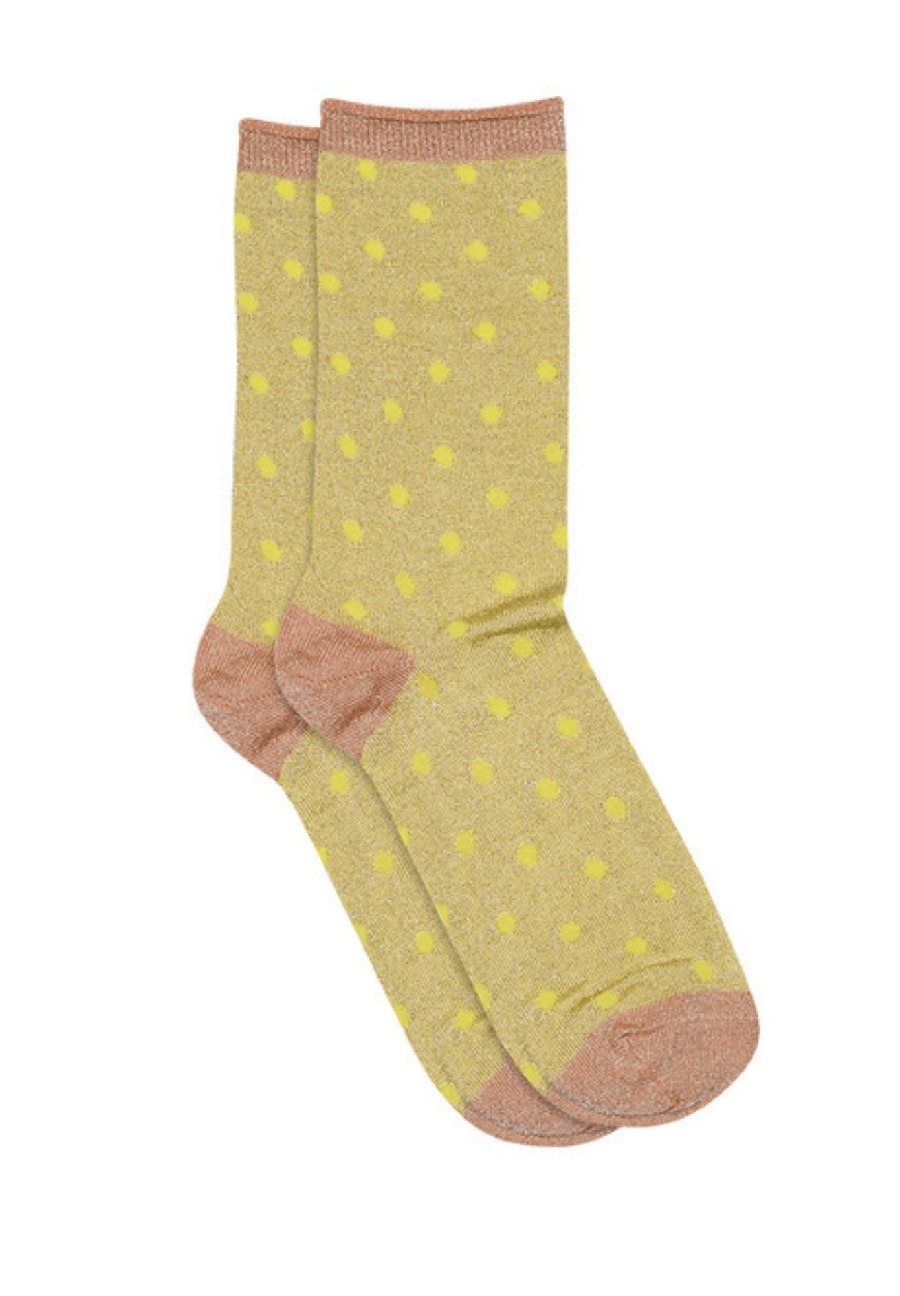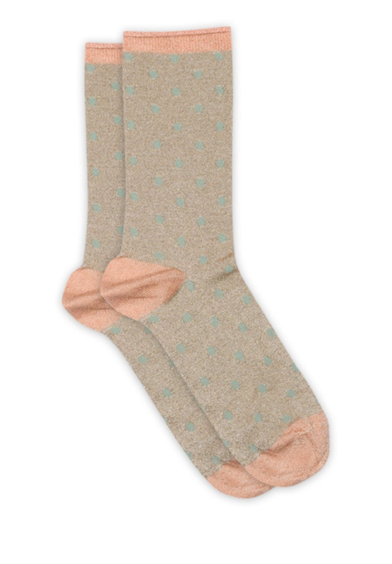 Wunderschöne pepunktete Glitzerstrümpfe von MPwoman mit einem gerollten Rand am oberen Ende, der dafür sorgt, dass der Strumpf bequem sitzt und nicht einschnürt.