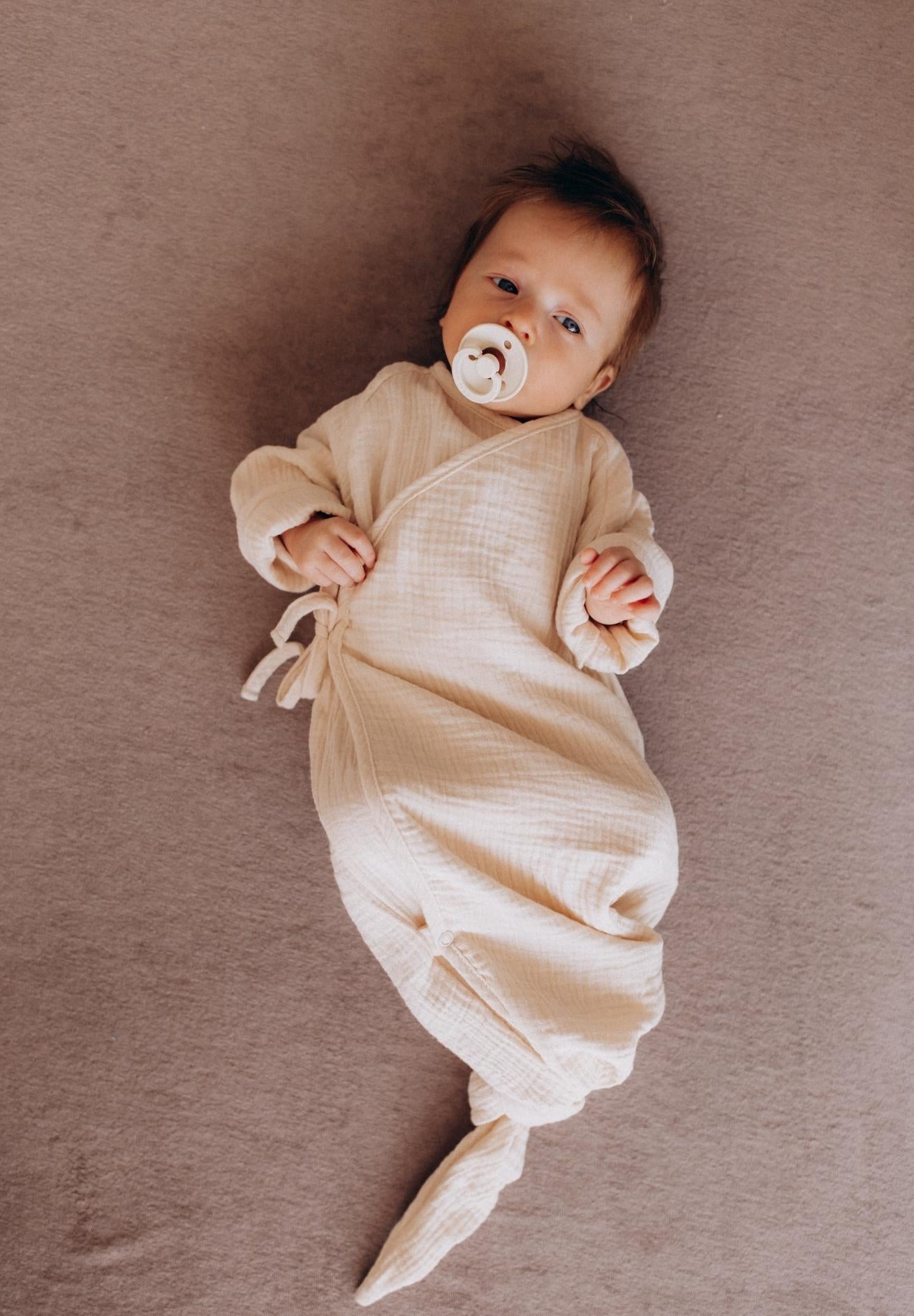 Der Kimono Babyschlafsack Cocoon von wooly organic aus Lettland ist ein absoluter Baby- und Elterntraum. Er ist super einfach anzuziehen, da du nicht über den Kopf musst und zudem ist er aus den besten Naturfasern für die zarte Babyhaut deines Kindes. Der Newborn Schlafsack wächst von Geburt an mit deinem Baby mit und passt ca. die ersten 6 Monate. Er kann auch für untertags als Kuschelcocoon verwendet werden. Wolle Seide oder Bambusbody oder Tencel/Leinen Body darunter und einfach nackig die Beine strampeln lassen - sooo schön für dein Baby.